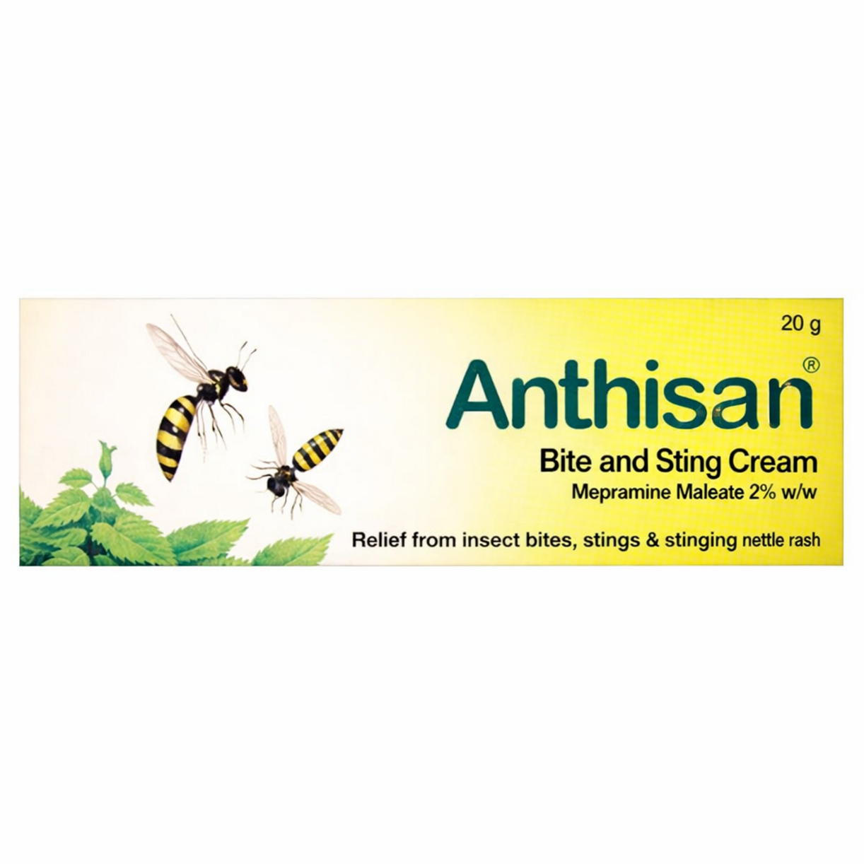 Anthisan contains an antihistamine that blocks the effects of histamine released during a bite or sting reaction. This helps minimize redness, itching, and inflammation on the affected area.