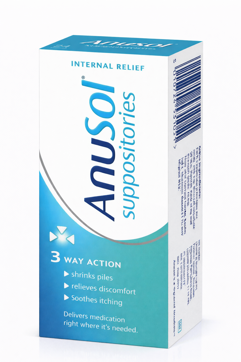 Anusol Suppositories are used to relieve internal haemorrhoids and associated symptoms such as discomfort, itching, and swelling. They work inside the rectum to soothe irritation and support healing.