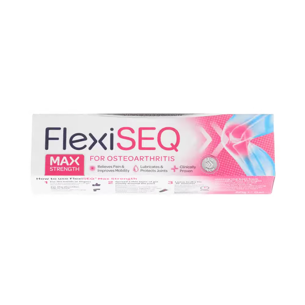 Flexiseq Max Strength Gel is designed to help relieve joint pain associated with osteoarthritis. It works by lubricating the joint area and reducing friction during movement.