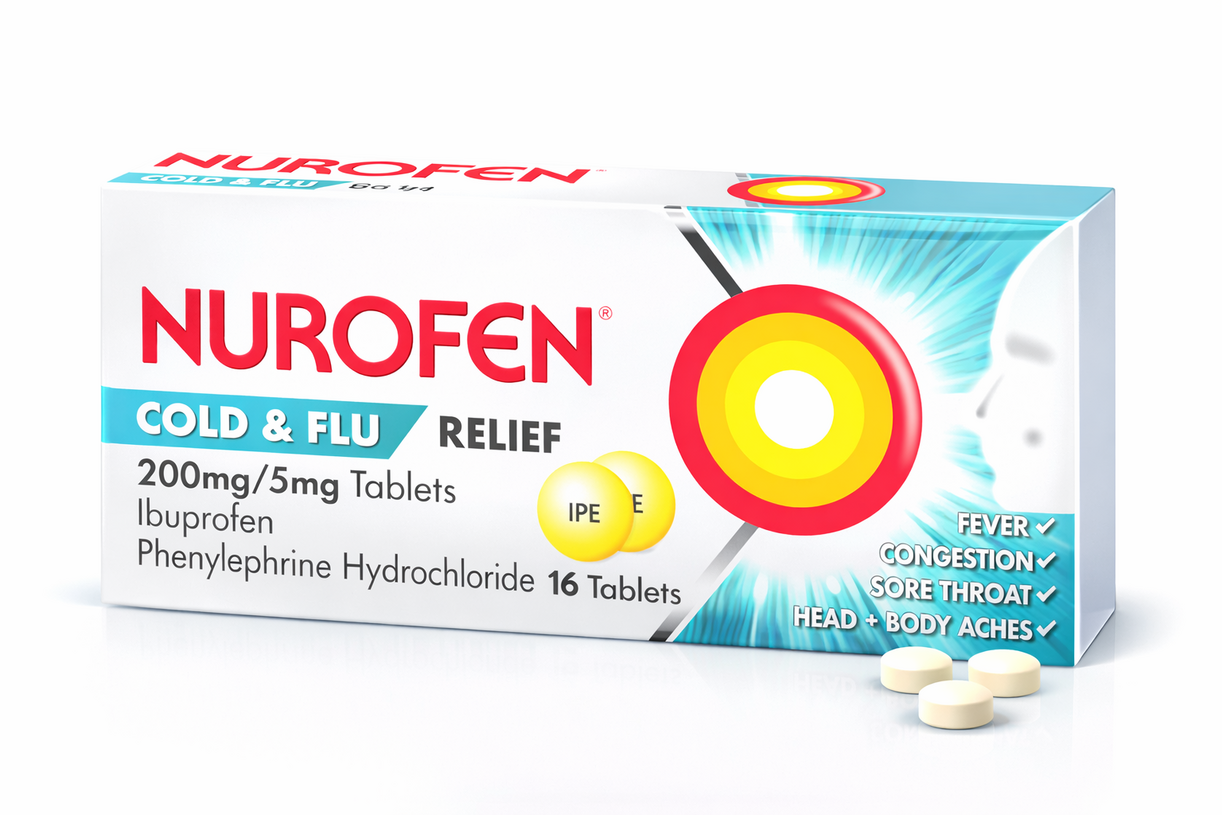 Nurofen Cold & Flu is formulated to ease common cold and flu symptoms such as headache, fever, body aches, sore throat, and nasal congestion. It combines pain relief with decongestant support to help you feel more comfortable during illness.