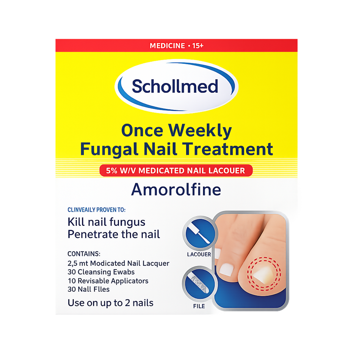 Schollmed Fungal Nail 5% Treatment is formulated to treat mild fungal nail infections by targeting the infection at its source. It helps improve the appearance of discolored, thickened, or brittle nails over time.