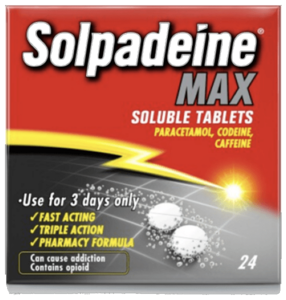 Solpadeine Max Soluble contains paracetamol and codeine, which work together to reduce pain signals. Paracetamol relieves pain and lowers fever, while codeine enhances pain relief by acting on the central nervous system.