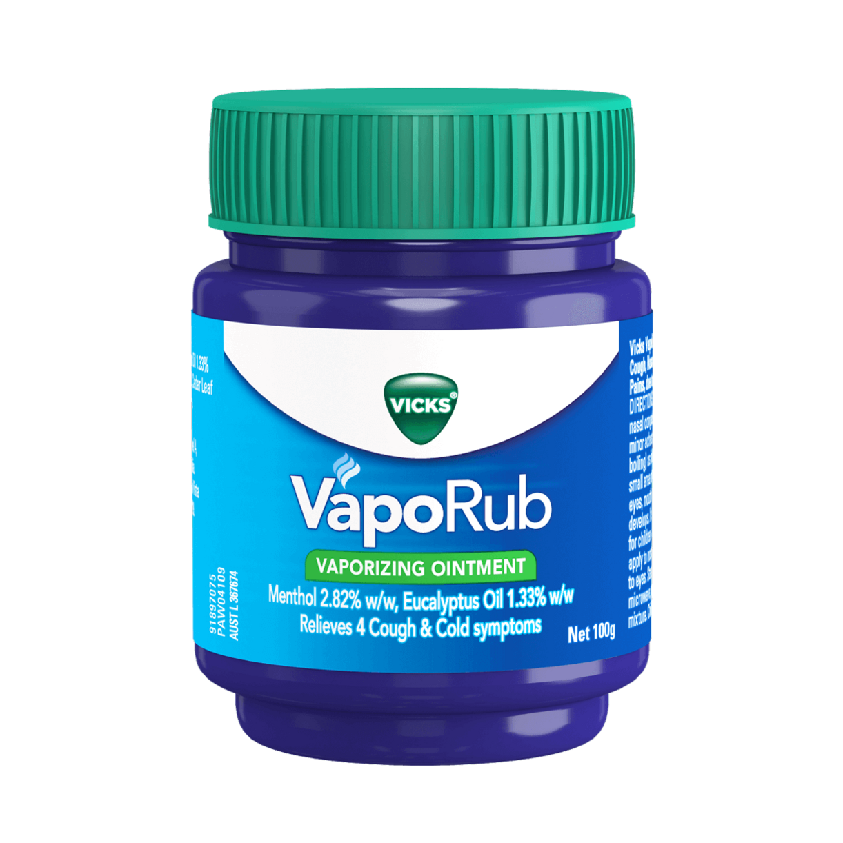 Vicks VapoRub Jar works through medicated vapors that are released when applied to the chest and throat. These vapors help soothe coughs and temporarily relieve nasal congestion.